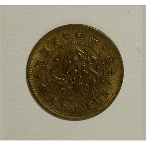 <B>Yi Hyong 1 Fun Year 505 (1896),</B></I> KM1104, XF with luster and a scarce issue. <BR><BR><b>Shipping:</b> Coins & Currency (<a target="_blank" href="http://www.heritageauctions.com/common/shipping.php">view shipping information</a>)