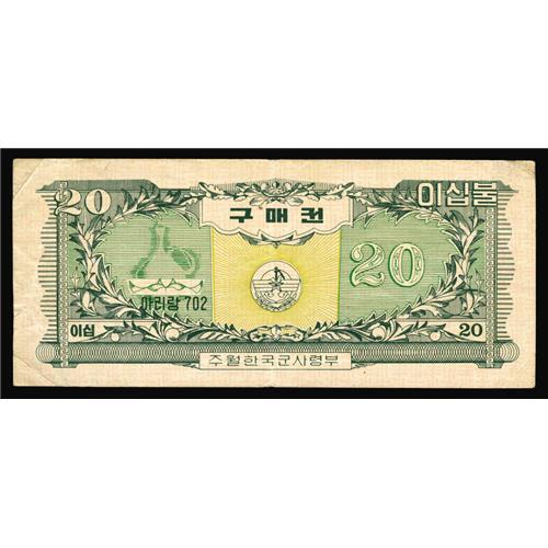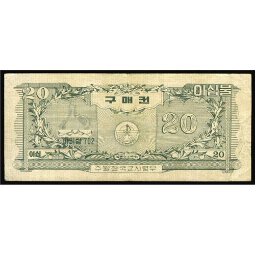 Korean MPC Coupon Series 2 (702) $20 Schwan 978 Korean MPC Coupon Series 2 (702) $20 Schwan 978 Very