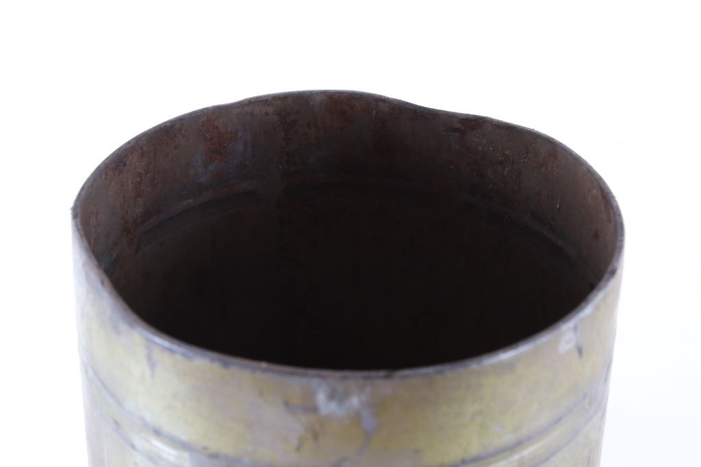 For your bidding pleasure is this WWII Era 76MM T19E1B1 Tank Gun Shell Cartridge. This shell cartridge shows good condition with the only rusted part being the primer base. The 76MM tank shell's usage can be traced all the way back to WWII when updated Sherman tanks arrived in the UK with upgraded guns. The purpose of the upgrade was to produce Anti Tank Hunter-Killer war machines, and the 1MM difference gave these US tanks the edge they needed increasing range and armor penetration. This particular round also saw usage in Korea and Vietnam. The Lot Pat. number is rusted over and the serial number is barely visible but this is unmistakably 76MM tank round possibly for a M1 gun or a Walker Bulldog Tank. The measurements of this artillery shell are 23" tall by 4 1/4" diameter primer base and 3" cartridge neck. Jeff