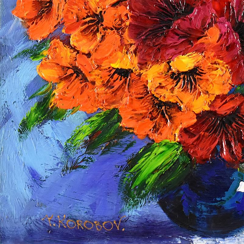 Private Glimpse is an original acrylic painting on canvas by Yana Korobov, hand signed by the artist. Includes Letter of Authenticity. Measures approx. 24" x 24" (image).