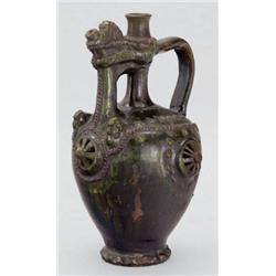 Erdély, Szeben vidéke, 19. sz. eleje, mázas cserép, áttört és rátétes díszítéssel, m: 31 cm