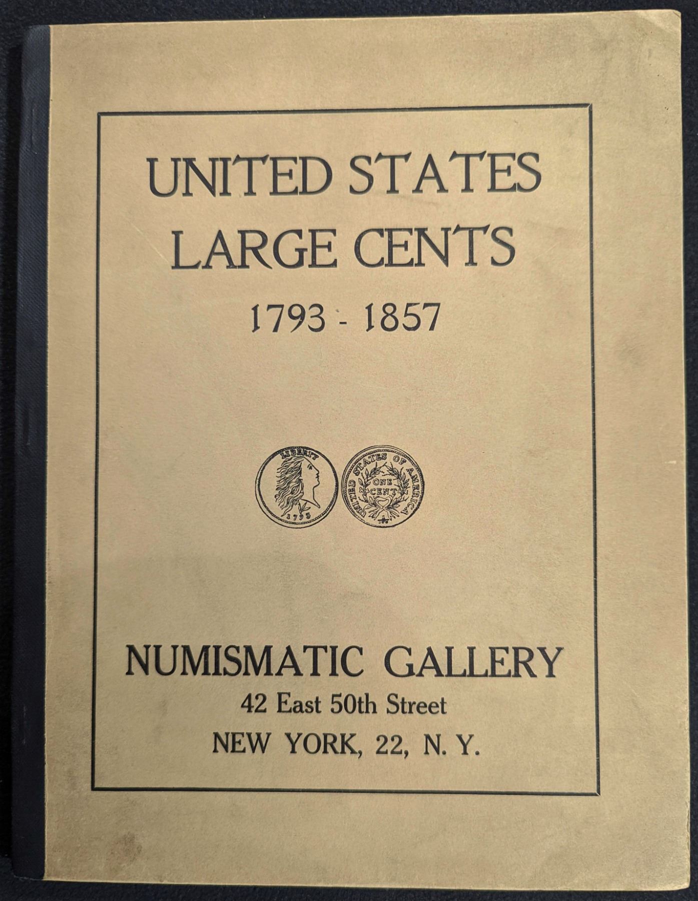 Kosoff, A. THE OUTSTANDING COLLECTION OF UNITED STATES LARGE CENTS FORMED BY MR. OSCAR J. PEARL, NEW YORK CITY. FOR SALE AT FIXED PRICES. 1944. 1-479 listings. 4to. This fixed price sale catalog includes numismatic material from the United States as part of the collection put together by Oscar J. Pearl. The sale includes 479 large cents of exceptionally fine quality including an exceptional series of 1793 cents and an almost complete 1794 series. New York: Numismatic Gallery. original cloth-backed printed card covers. 16 b&w plates. Also included are illustrated reprints of Crosby on 1793s and Chapman on 1794s. An important catalogue. Generke 26[350]. Lot weight: 0 lbs 11oz. Subject(s): United States Coinage.
