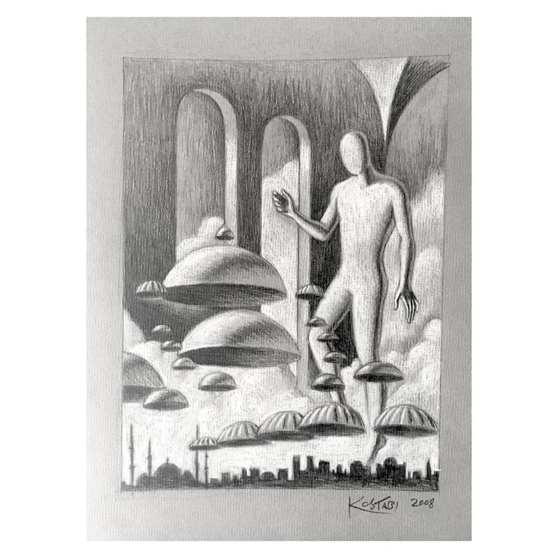 "Half Of The Equation" is an original artwork, pencil on paper, by Mark Kostabi. The piece is hand signed and comes with a certificate of authenticity. Measures approximately 13" x 9".
