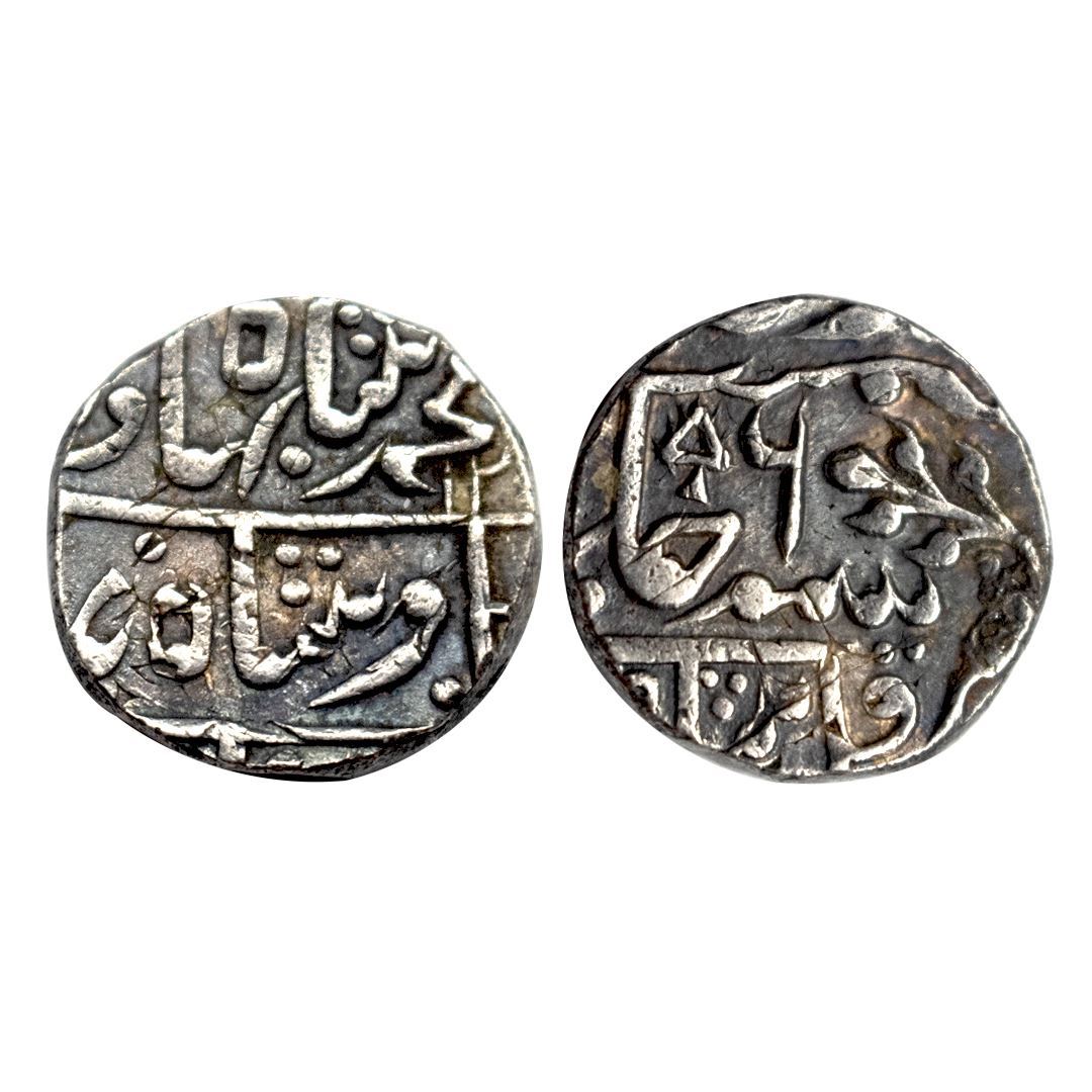 Kotah, Madan Shahi Series, Silver Rupee, 11.24Grms, Qila Shahbad Mint, RY 6, in the name of Bahadur Shah II, Jhar mint mark on rev. Unlisted in KM. Extremely Fine.