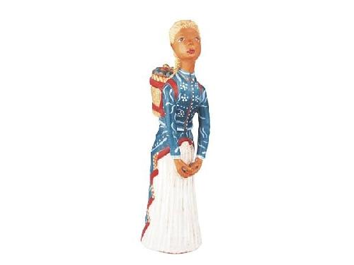 Colour painted pottery. Signed: K M initials on the skirt on the backside. Size: 39.5 cm