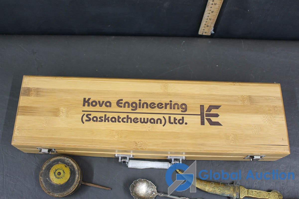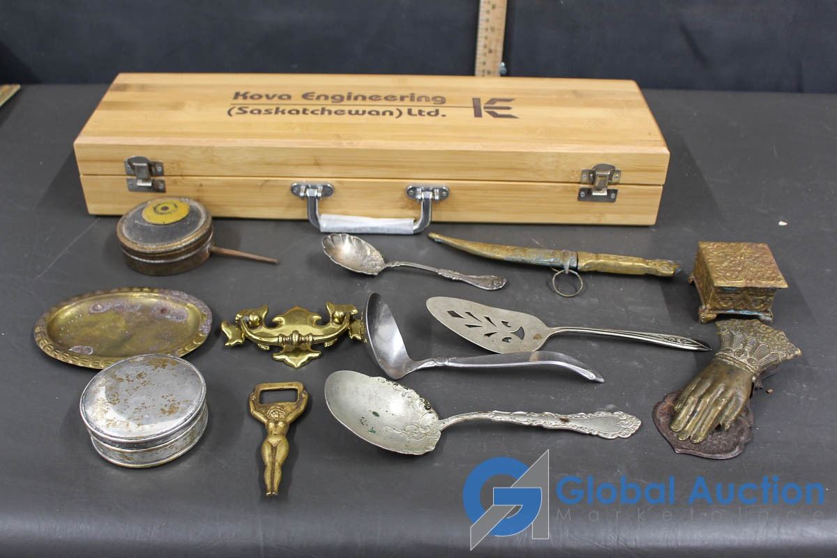 Kova Engineering Wooden Container with Brass & Silver Items