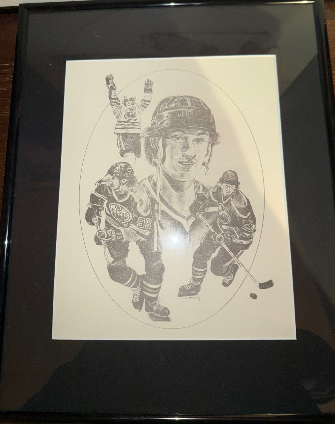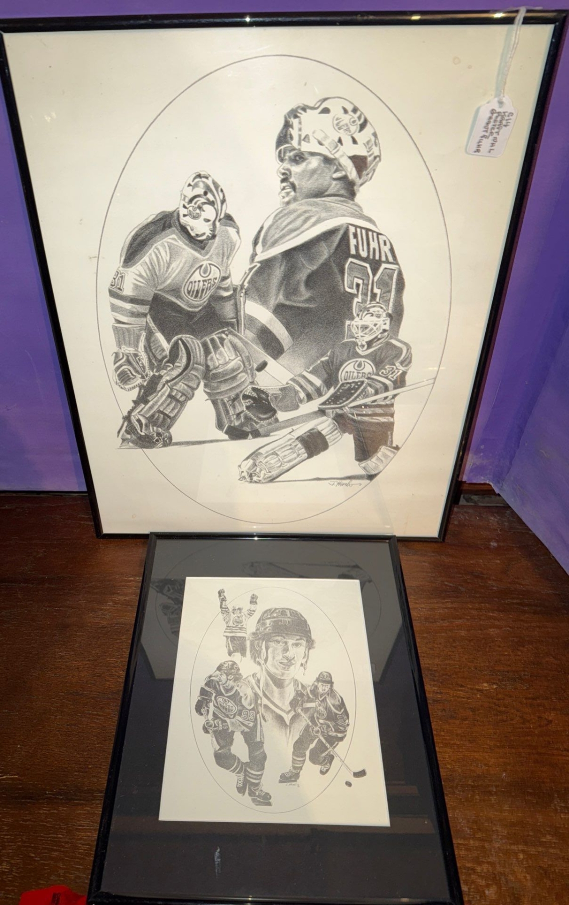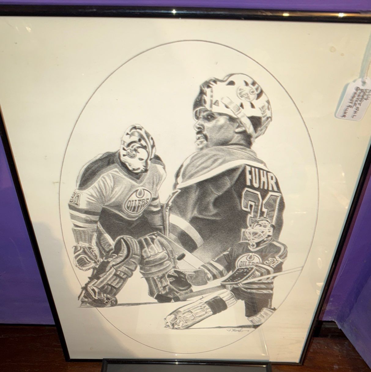 Kraft NHL Hockey Framed Sketches/Drawings Of Grant Fuhr & The Oilers Team