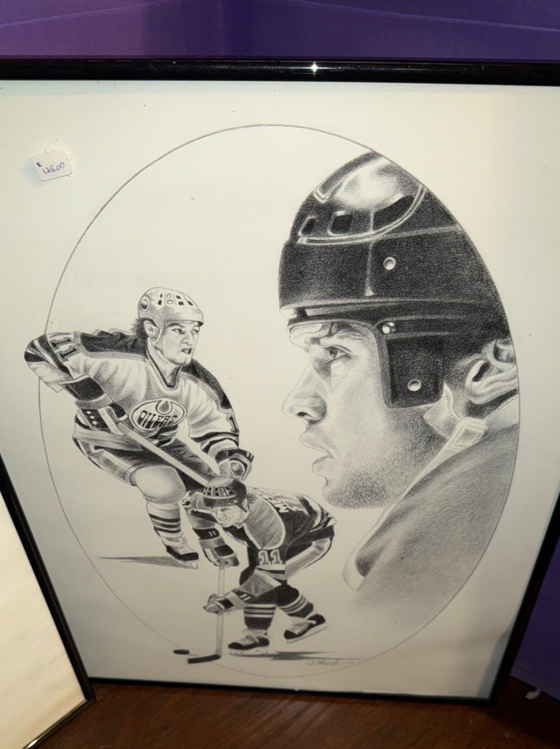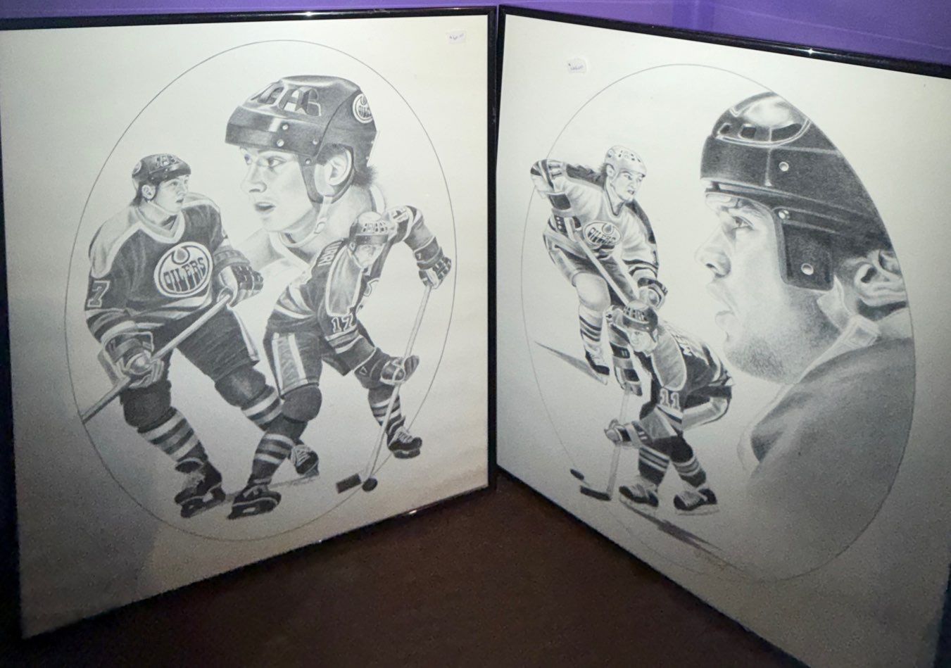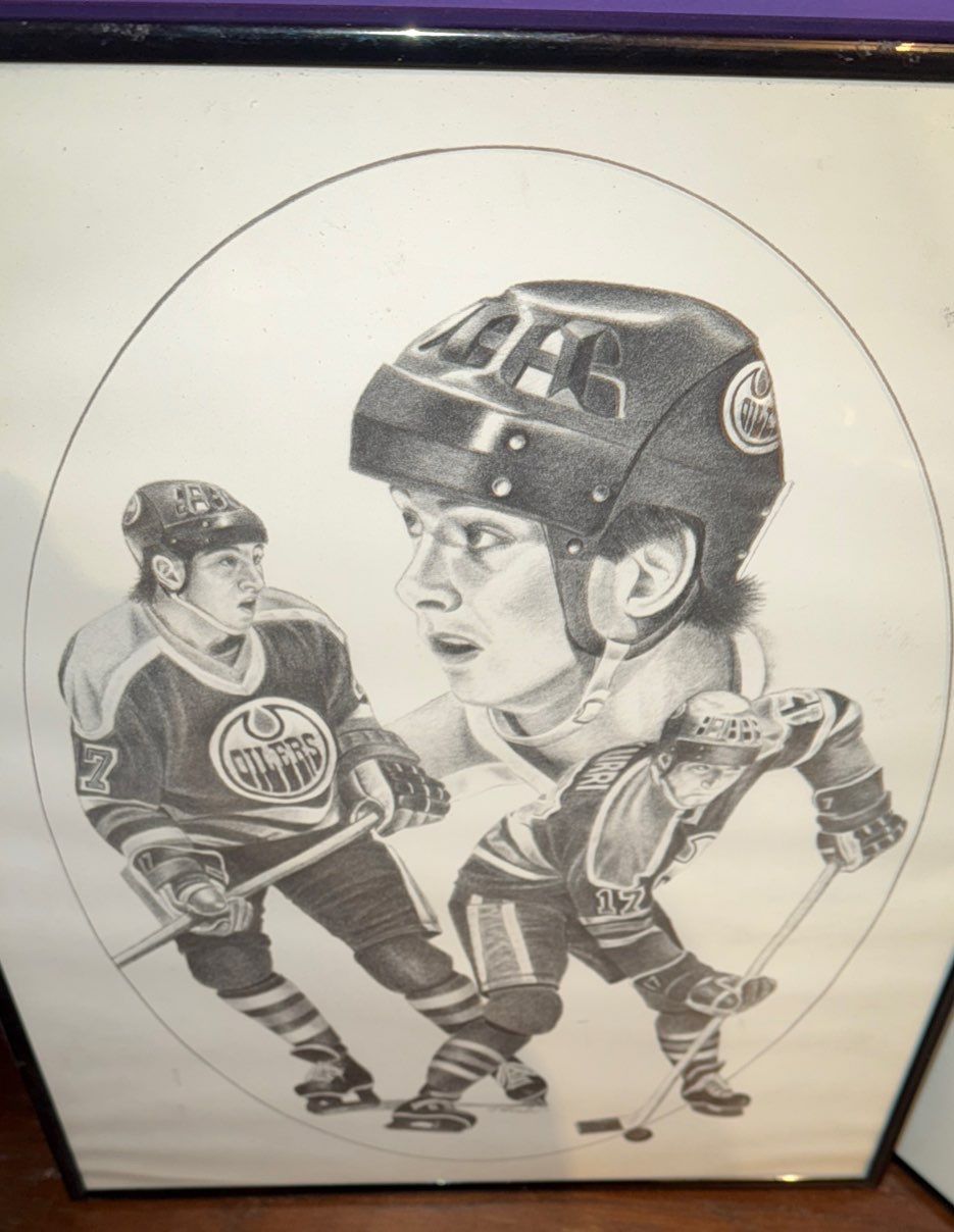 Kraft NHL Hockey Framed Sketches/ Drawings- Wayne Gretzky & Mark Messier