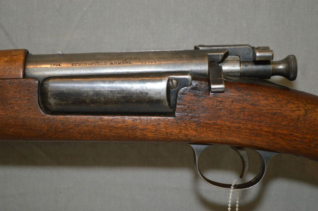 Krag - Jorgensen ( Springfield Armoury ) Model 1894 .30-40 Krag cal Bolt Action Full Wood Military Carbine w/ 22" bbl [ blue finish starting to fade, wood has holes for swivels, metal butt plate ( 7 ) ] Ser # 21583