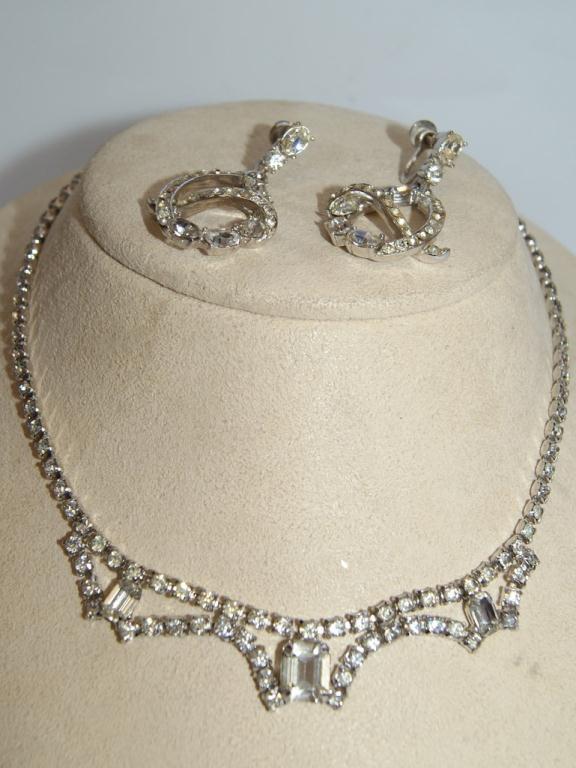 Kramer Rhinestone Necklace & Earring Set Sold as One Lot