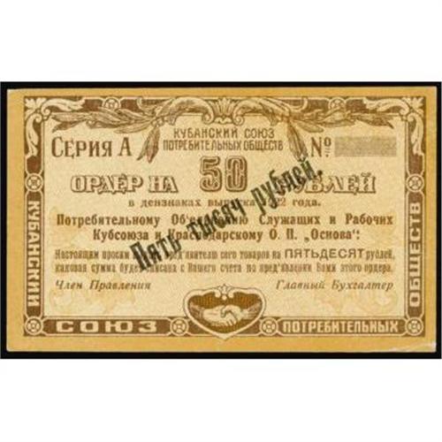 <style type="text/css"> body, td, th { font-family: Arial, Helvetica, sans-serif; font-size: 12px; color: #482424; margin: 0px; padding: 0px; } #header { background-image: url(http://www.bowersandmerena.com/ebay/images/template_v3_01.gif); clear: both; background-color: #590303; border-top-width: 2px; border-top-style: solid; border-top-color: #B38C4F; } #header #header_wrapper { height: 75px; clear: both; width: 800px; margin-right: auto; margin-left: auto; background-image: url(http://www.bowersandmerena.com/ebay/images/template_v3_03.gif); background-repeat: no-repeat; background-position: right; color: #F3EDCC; } #header #header_wrapper #header_logo { float: left; height: 75px; width: 444px; background-image: url(http://www.bowersandmerena.com/ebay/images/template_v3_02.gif); background-repeat: no-repeat; font-size: 10px; text-transform: capitalize; color: #B38C4F; } #header #header_wrapper #header_right { float: left; height: 75px; width: 356px; text-align: right; } #header #header_wrapper #header_right #headerLoginBtn { margin-bottom: 30px; } #header #header_wrapper #header_right input#txtSearch { color: #B49056; border: 1px solid #B49056; width: 175px; padding-top: 3px; padding-right: 3px; padding-bottom: 4px; padding-left: 3px; } #nav { height: 37px; background-image: url(http://www.bowersandmerena.com/ebay/images/template_v3_05.gif); clear: both; } #nav #nav_wrapper { height: 35px; width: 800px; margin-right: auto; margin-left: auto; border-left-width: 1px; border-left-style: solid; border-left-color: #B38C4F; } #nav #nav_wrapper a { padding-right: 15px; padding-left: 15px; border-right-width: 1px; border-right-style: solid; border-right-color: #B38C4F; height: 25px; padding-top: 10px; display: block; float: left; text-decoration: none; font-weight: bold; color: #5D0303; } #nav #nav_wrapper a:hover { color: #B38C4F; } #nav #nav_wrapper #search { float: right; padding-top: 7px; } #nav #nav_wrapper #search #txtSearch { font-family: Arial, Helvetica, sans-serif; font-size: 10px; text-transform: uppercase; color: #D2AE75; border: 1px solid #B38C4F; padding: 3px; } #content_bgd { background-image: url(http://www.bowersandmerena.com/ebay/images/template_v3_09.gif); background-repeat: repeat-y; background-position: center; padding-top: 15px; padding-bottom: 15px; background-color: #FBFBDB; } #content_wrapper { clear: both; height: auto; width: 800px; margin-right: auto; margin-left: auto; } .LotDetailWhite { line-height:normal; font-size:13px; font-family: arial,helvetica,sans-serif; color: White; font-weight: bold; } .LotDetailInformation { line-height:normal; font-size: 13px; font-family: arial,helvetica,sans-serif; } .LotDetailMessage { line-height:normal; font-size: 13px; font-family: arial,helvetica,sans-serif; color: red; } } tr.HeaderAuctionTitle td { color: #000000; font-weight: bold; padding: 2px; background-image: url(http://www.bowersandmerena.com/ebay/images/template_v3_05.gif); background-repeat: repeat-x; border-bottom-width: 1px; border-bottom-style: solid; border-bottom-color: #B38C4F; } table.AuctionSummary a, table.AuctionSummary a:link, table.AuctionSummary a:visited { color: #0000FF; text-decoration: none; } } td.tableHeaderLeft { border-left-width: 1px; border-left-style: solid; border-left-color: #B38C4F; } td.tableHeaderRight { border-right-width: 1px; border-right-style: solid; border-right-color: #B38C4F; } td.tableCellMiddle { border-left-width: 1px; border-left-style: solid; border-left-color: #B38C4F; border-right-width: 1px; border-right-style: solid; border-right-color: #B38C4F; padding: 5px; } tr.footer td { border-top-width: 1px; border-top-style: solid; border-top-color: #B38C4F; } </style> </head> <body> <div id="header"> <div id="header_wrapper"> <div id="header_logo"> </div> <div id="header_right"> </div> </div> </div> <div id="nav"> <div id="nav_wrapper"> <a href="http://www.bowersandmerena.com">Our eBayLive Auctions</a> <a href="#PaymentInfo">Payment Information</a> <a href="#ShippingInfo">Shipping Information</a> <a href="#About">About Bowers and Merena</a> </div> </div> <div id="content_bgd"> <div id="content_wrapper"> <table width="100%" border="0" cellpadding="5" cellspacing="0" class="AuctionSummary"> <tbody> <tr class="HeaderAuctionTitle" style="height: 25px;"> <td align="left" class="tableHeaderLeft" > </td> <td align="center" class="tableHeaderRight"> <span style="font-size: large;">Lot #2129. North Caucasus. City of Krasnodar Union Member, Exchange Notes or Scrip Notes, 1922 Issue.</span> </td> </tr> <tr> <td colspan="3" class="tableCellMiddle"> Lot of 4 notes.1922. 50(x2), 100, 500 Rubles, P-Unlisted, Denis #874, Unc. condition. One of the 50 Rubel notes has been over stamped 5,000 Rubles on both sides. Scarce set.