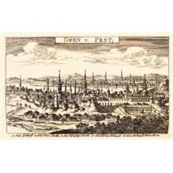 Krekwitz [György], Georg: Totius Regni Hungariae superioris & inferioris accurata Descriptio. Das ist richtige beschreibung dess gantzen Königreichs Hungarn, so wol was das obere als untere oder niedere anbelanget, dabey dann die beschaffenheit desselben städte, vestungen, schlösser, städtlein marcktflecken und angräntzende oerter; sampt allem dem jenigen was am Donau-Strom lieget und befindlich ist: auf das deutlichste und ausführlichste, so wol derselben ursprung, lager, fruchtbarkeit, als herrschafft und ordnung betreffende.<p>Second edition. Illustrated with 65 copperplates, of which 61 depict Hungarian, German, and Austrian towns. This copy contains the folding map of Hungary which is usually missing from other copies. This copy probably has one missing view. In contemporary leather, slightly worn.