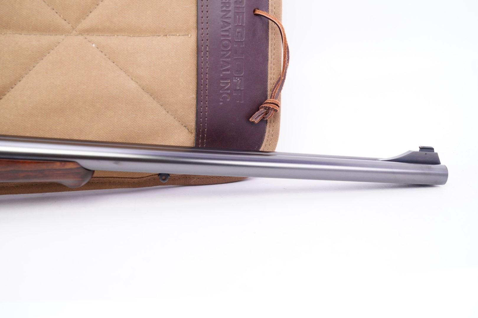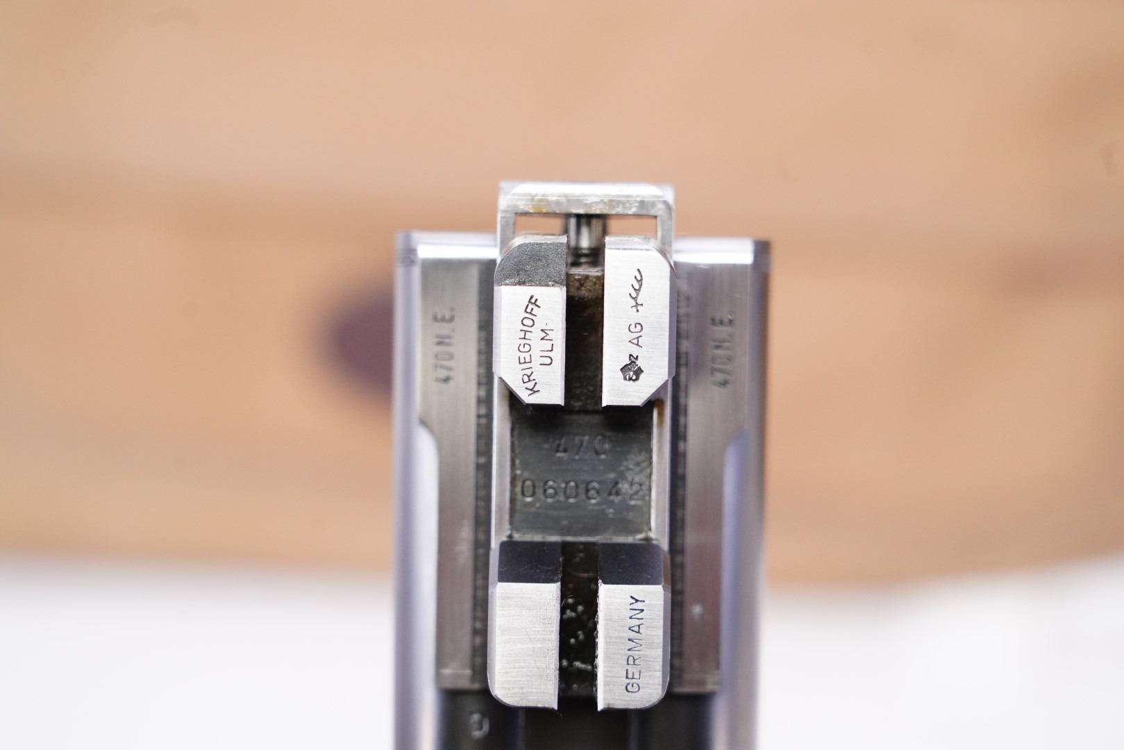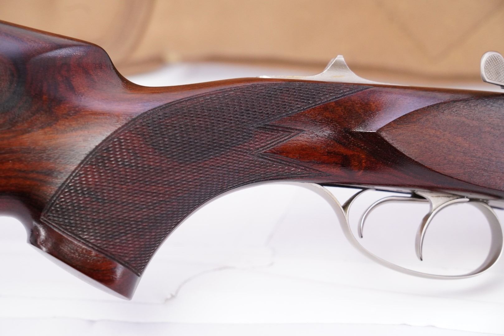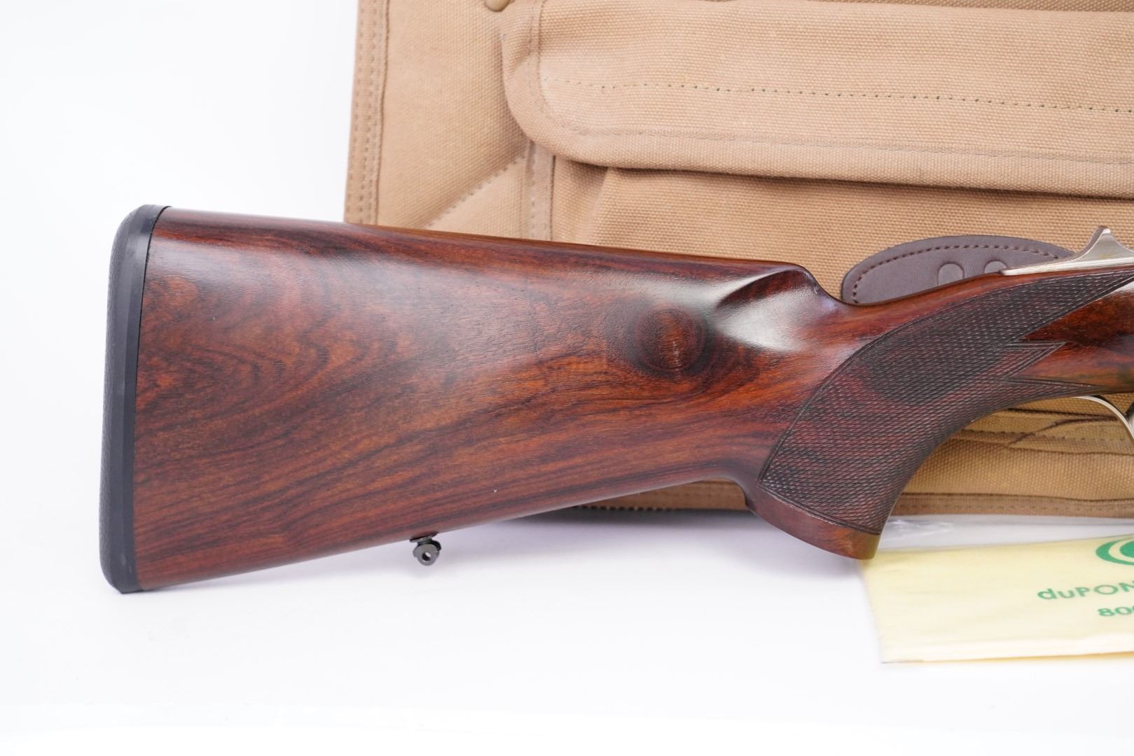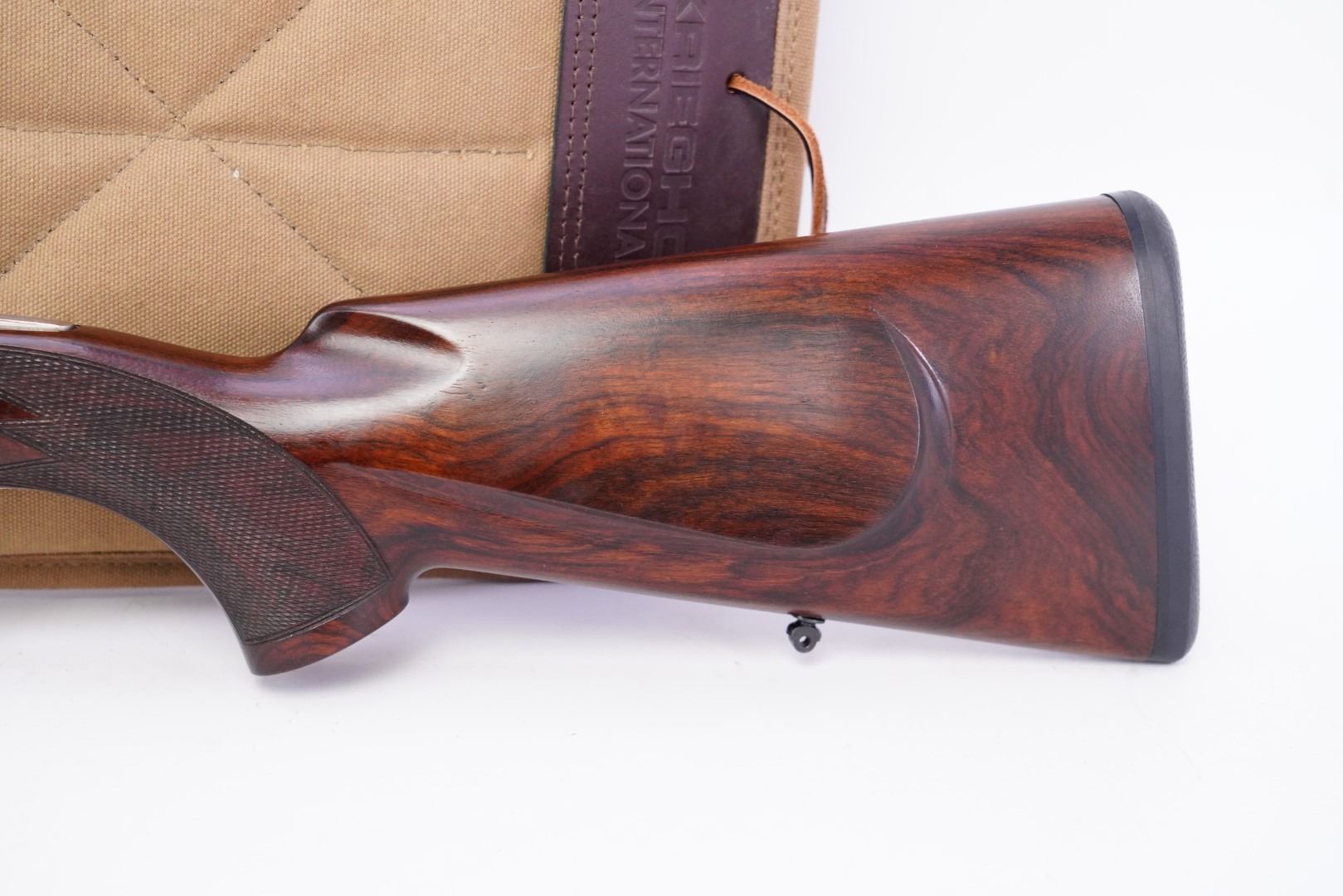 Our Assessment: H. Krieghoff GmbH – known worldwide as "Krieghoff" – began as a single vision to build the ideal hunting gun, a Drilling. Krieghoff’s evolution from its 1886 founding as Sempert and Krieghoff to one of the top manufacturers of fine hunting and sporting arms currently spans five generations, each with an innovative eye to the future. Reflecting its roots, Krieghoff continues to build and offer hunting arms, such as drillings, rifles including double rifles and shotguns including a bespoke line of true sidelock arms. With their pure elegance, first-class craftsmanship and proven technology, these masterpieces of the art of gunmaking fall into the same category as the highly coveted "best" english or Italian guns.This is one of their bespoke rifles, the Classic "Big Five" Double Rifle. Nothing epitomizes the skills and experience needed for a successful hunt like taking game with a classic double rifle. Prized by dangerous game hunters for years, the classic double rifle provides the security and reliability when each shot really counts. The Krieghoff Classic "Big Five" Double Rifle combines the heritage of the traditional side-by-side and the sophistication of the most modern design and manufacturing technology. Krieghoff’s master gunmakers combined both traditional wisdom and innovative ideas to build a rifle that provides the ultimate in safety and reliability and a wide range of features that ensure smooth, quick, and accurate shooting. In addition to the superb handling of the rifle, a most important feature is the manual cocking device, which is located on the top tang, in the position usually occupied by a conventional safety. It allows carrying the rifle fully loaded with the hammers uncocked – the safest position since there is no chance of an accidental discharge. Craig Boddington, an accomplished hunter and knowledgeable writer remarks: "After using it in the field, I am increasingly impressed with your cocking device versus a traditional safety. Great rifle, and of course it performed wonderfully."This one has seen little use and looks absolutely beautiful. The bores in its nominal 24" barrel set are nice and the mechanics are Safari ready. If you have the stones to chase the African "Big Five" (lion, leopard, rhino, elephant and African buffalo) then you are certainly ballsy enough to drop a bid! Please see our photos and good luck!