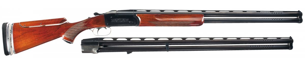 Manufactured in the 1970s with a 28 inch barrel set with chokes that gauge at cylinder/cylinder and are marked "S"/"S", has been ported and has 2 3/4 inch chambers with long forcing cones and ejectors. An extra set of 32 inch barrels have been added at a later point and have a high step rib, the chokes gauge modified/modified and are marked "F"/"IM", has been ported and has 2 3/4 inch chambers with long forcing cones and ejectors. Both sets of barrels have a white bead front sight and a steel mid bead sight. Mounted on a multi-point skip line checkered walnut forearm and pistol grip stock with four-way adjustable comb and Gracoil recoil reducer with through the pad adjuster and Kick-Eez recoil pad. Length of pull is 14 1/4 inches. With an Americase that houses everything and has the initials "J.M.Z." and the NRA logo on the inside.