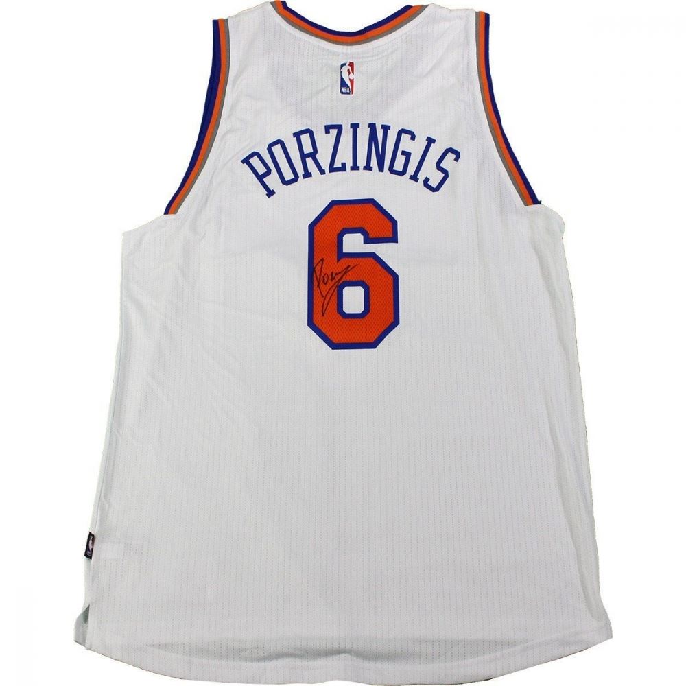 New York Knicks rising star Kristaps Porzingis has seen a lot in his short time in the NBA. From getting booed when he got drafted to a sold out Madison Square Garden chanting his name, there is no denying that Porzingis has taken not only New York but the NBA by storm. The Rookie from Liepaja, Latvia is 7? 3? and is a force to be reckoned with. Add this hand-signed Swingman jersey by Porzingis and be the envy of all your family and friends who wished they had it as part of their collection.