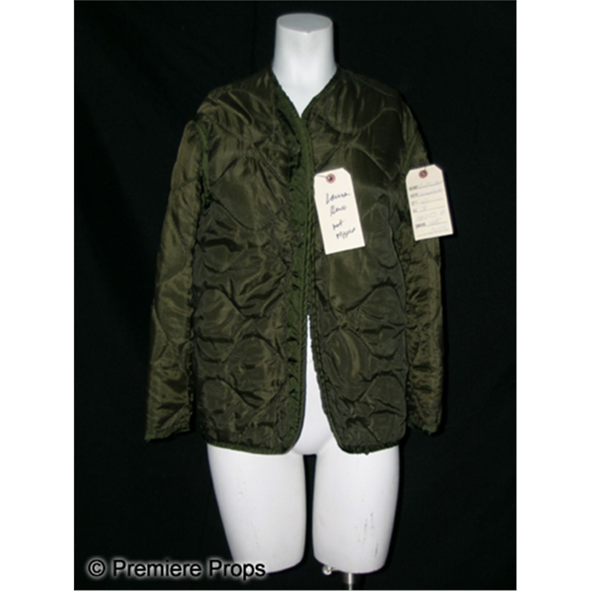 Green jacket worn by Kristen Bell as Laura Newton in Spartan (2004). Newton was the President's daughter, a young lady who is kidnapped by nefarious forces in this film directed by David Mamet. Includes studio-issued hangtags, with Bell's name and character handwritten on them.