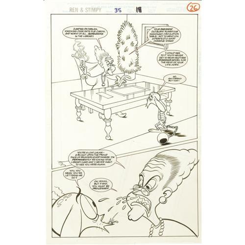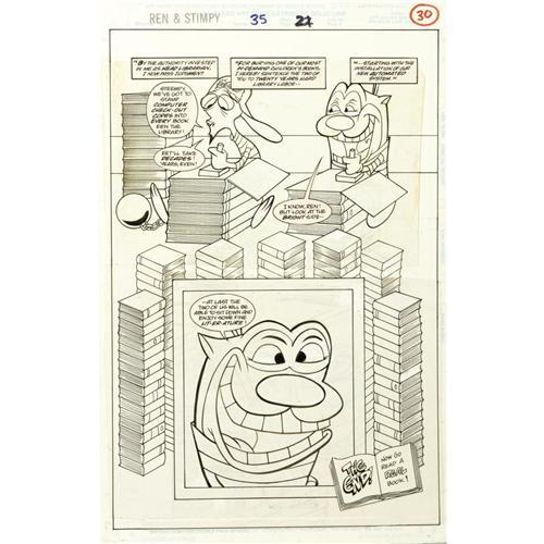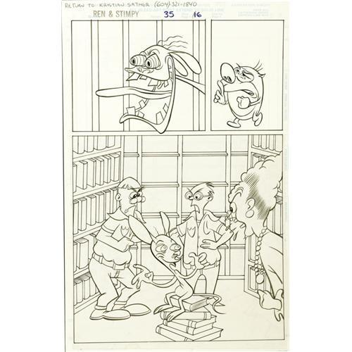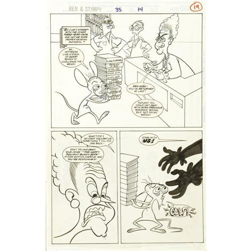 The outlandish "Ren & Stimpy Show" spun off into a Marvel comic book series for 42 issues. From The Ren & Stimpy Show #35, here are pages 14, 16, 18, and 21 by Kristian Sather. Each page has an image area of 10" x 15". In Very Good condition.<BR><BR><b>Shipping:</b> Small Flat (<a target="_blank" href="http://www.heritageauctions.com/common/shipping.php">view shipping information</a>)