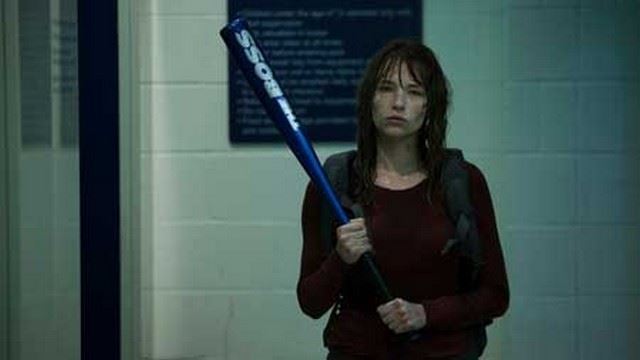 From the production company who produced the thiller Kristy (2014) is the hero screen used Hoodie Attacker baseball bat. This hero bat is a blue with black grip metal 'The Boss' baseball bat. Seen clearly on screen in the film, this measures approximately 32" long.