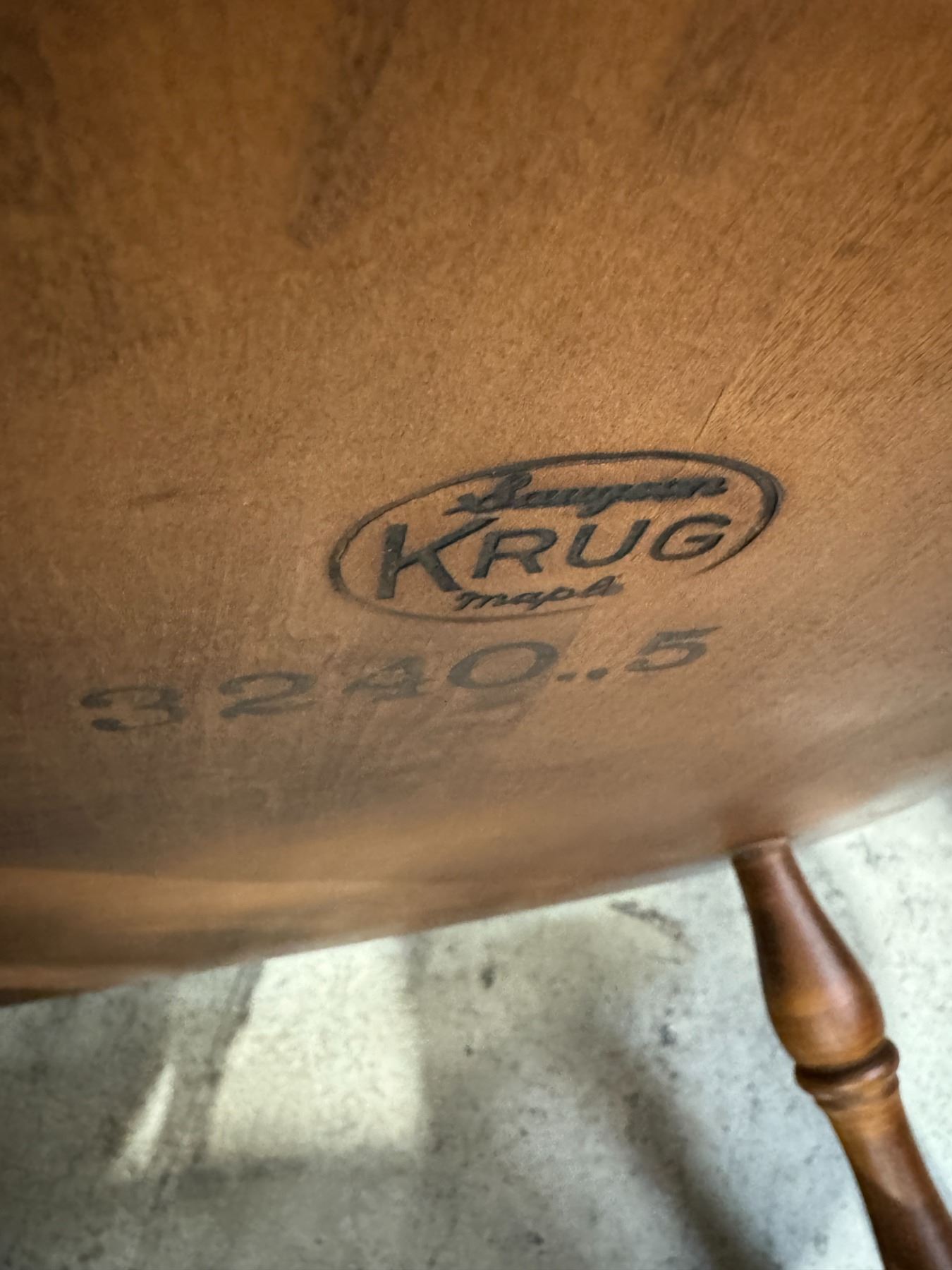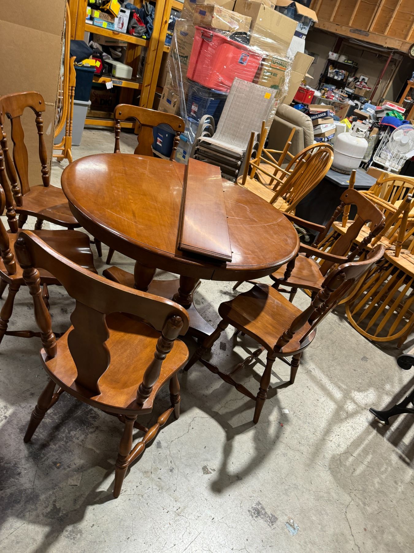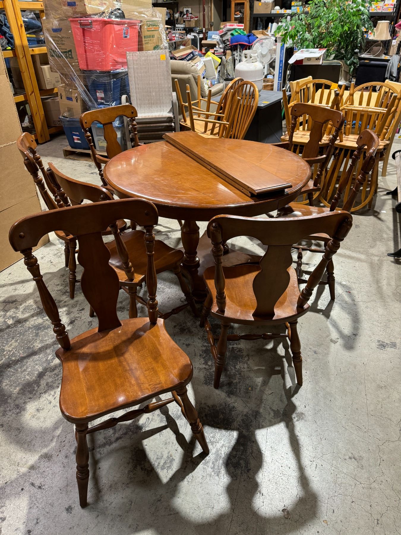 Krug maple table and chairs, two captains chairs, five other chairs 2 leaves