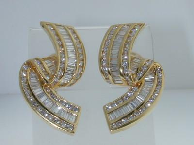 The total weight of Baguette diamond are 3.1 ct.,approxmiately. G color VVS clarity.