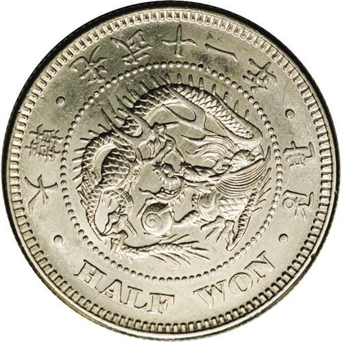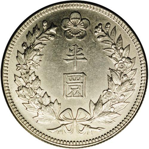 Kuang Mu silver 1/2 Won year 11 (1907), KM1135, brillia Kuang Mu silver 1/2 Won year 11 (1907),