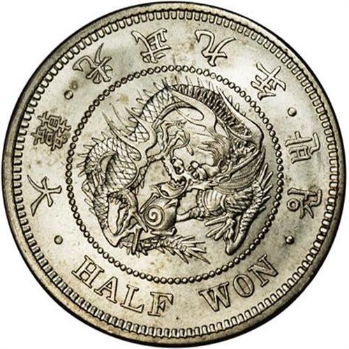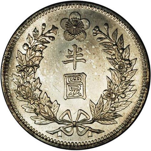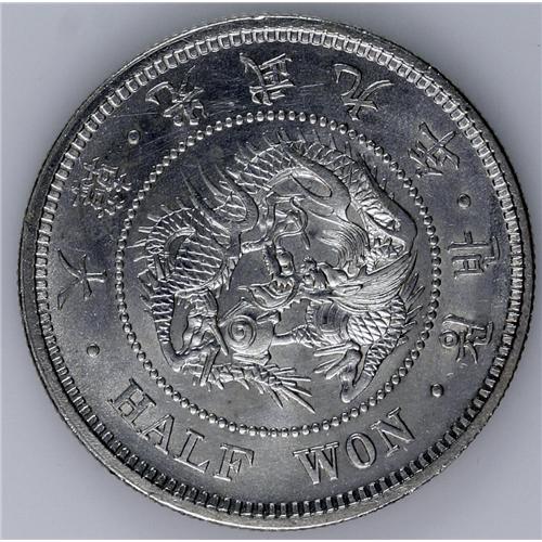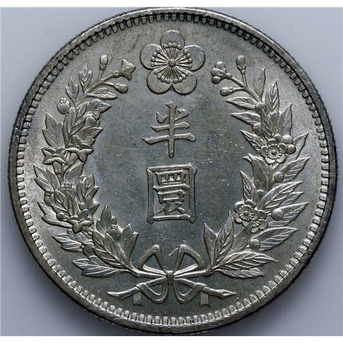 Kuang Mu silver 1/2 Won year 9 (1905), KM1129, Choice A Kuang Mu silver 1/2 Won year 9 (1905),