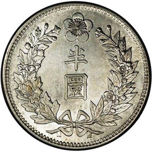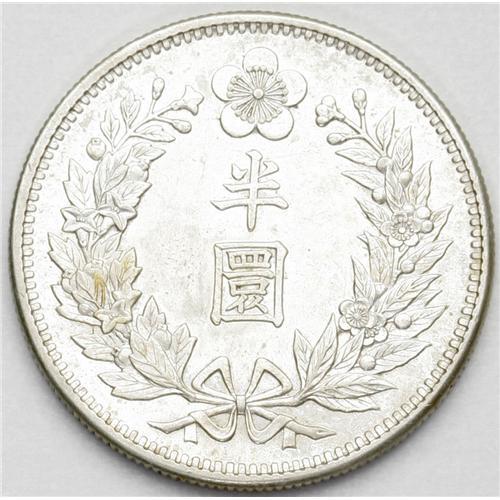 Kuang Mu silver 1/2 Won year 9 (1905), KM1129, lustrous Kuang Mu silver 1/2 Won year 9 (1905),