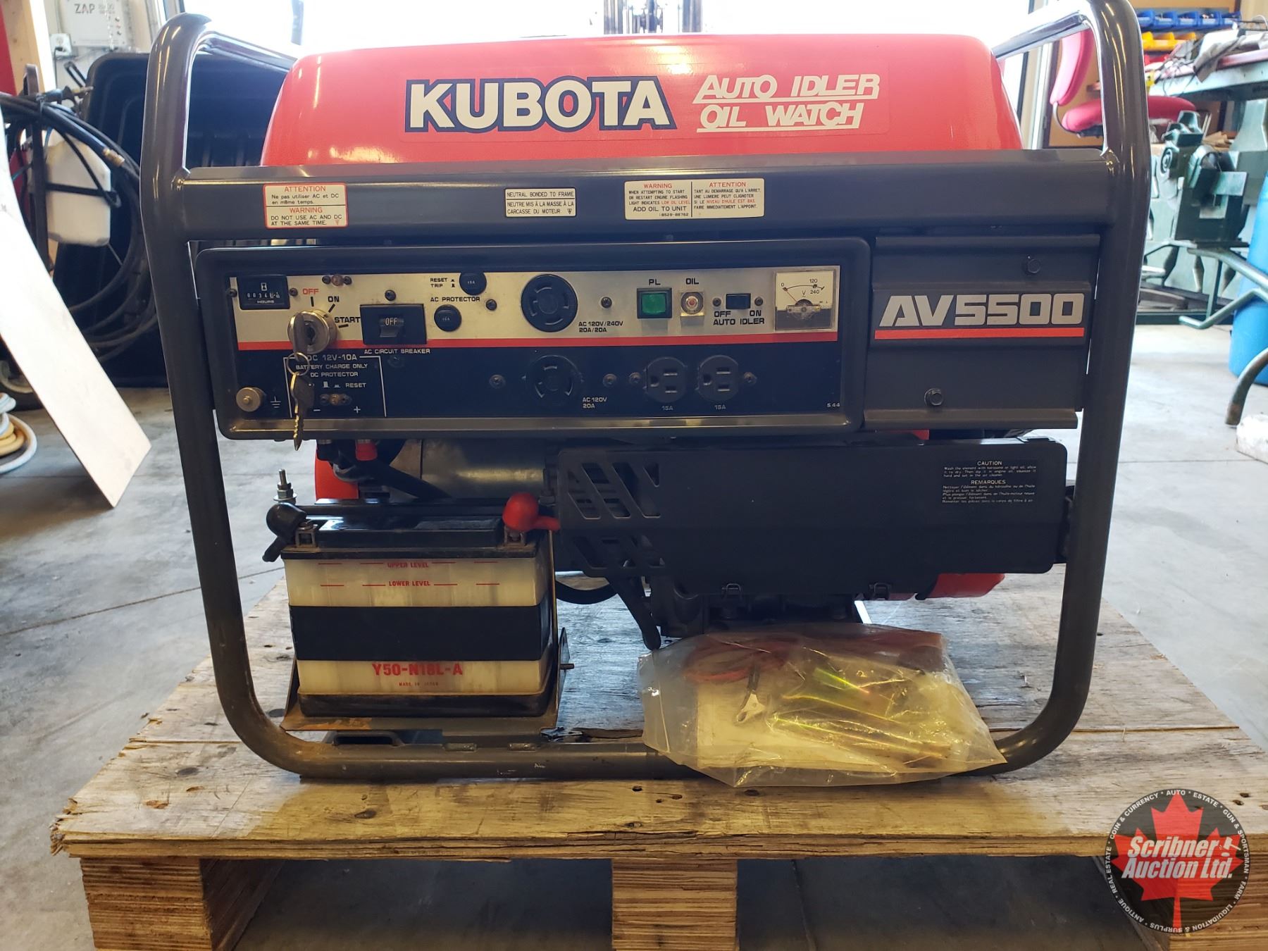Kubota AV5500 Generator : Automatic Choke; Electric Start (34hrs) (Needs Battery) (24"H x 27-1/2"W x 18-1/2"D) (SEE PICS & Video!)