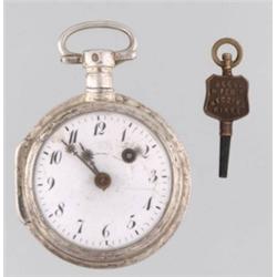 angol(?), 1732 -ben gyártott spingli, orsós gátszerkezetu zsebóra, kiegyenlíto csiga lánccal, kulcsos felhúzás és mutatóállás, alsó hajszálrugó, kézzel csiszolt rubin fedoko, porcelán számlap, márkajelzés nélkül, elore nyíló ezüst tok, 1938 -as portugál jelzéssel,számlap restaurált, kulcs pótlás, 3 hónapos garancia jeggyel, muködoképes