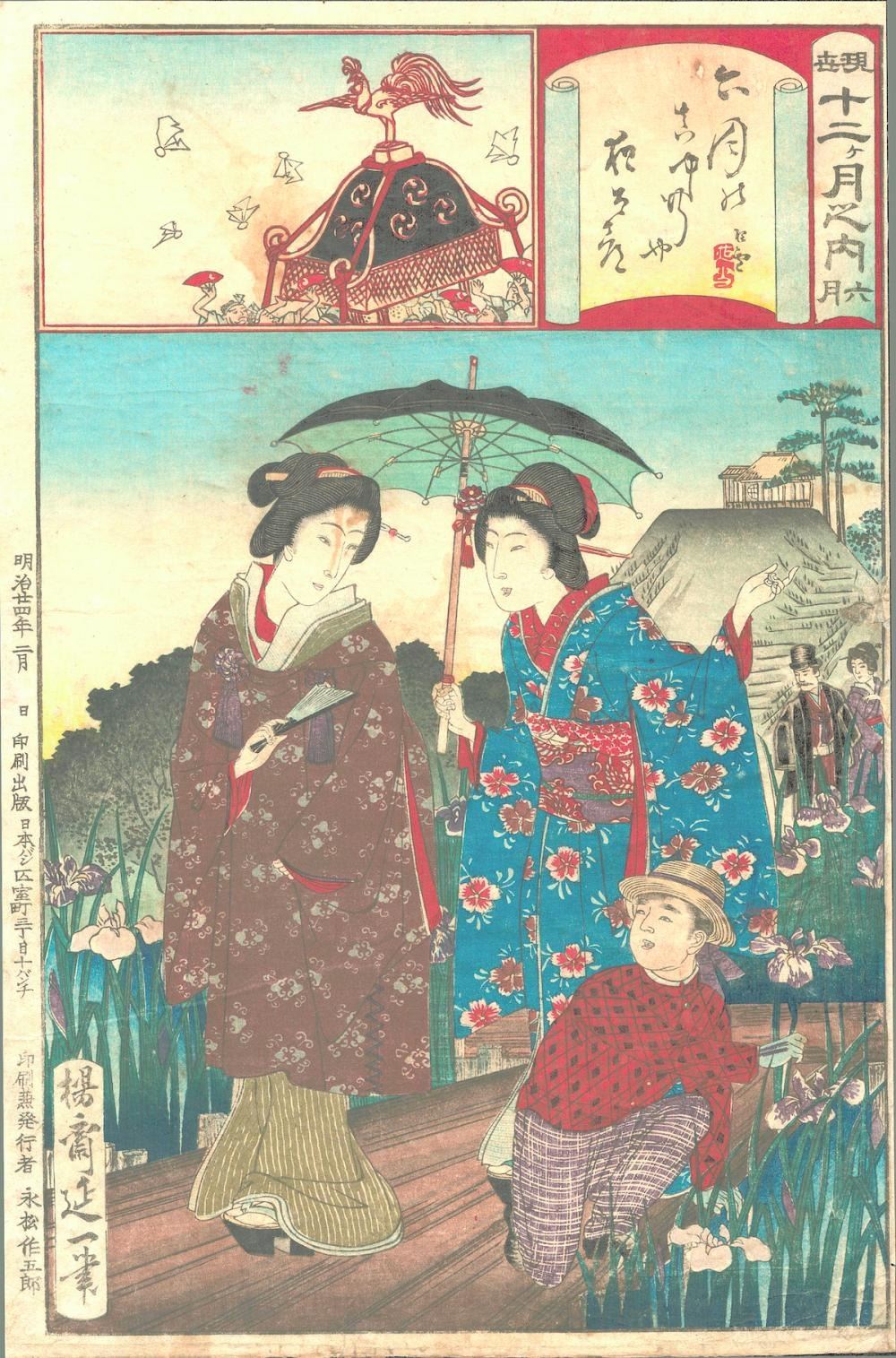 Kunichika (1835 - 1900) - "Women Conversing" - Japanese Woodblock Print, Mounted, otherwise fine condition, 14 x 9.75