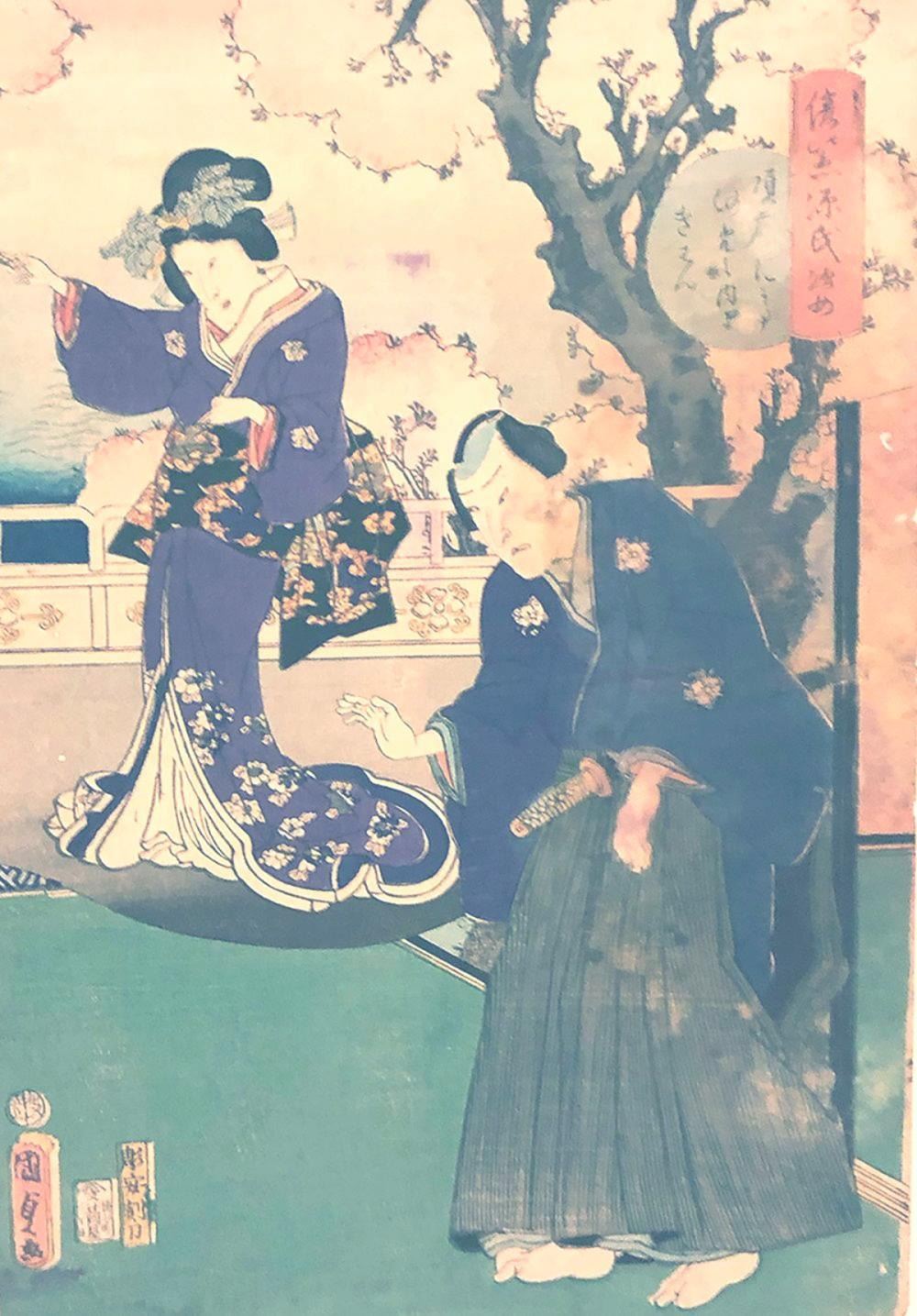 Kunisada - "Dancing Scene" Japanese Woodblock Print, some aging, otherwise fine condition, 14 x 9.5