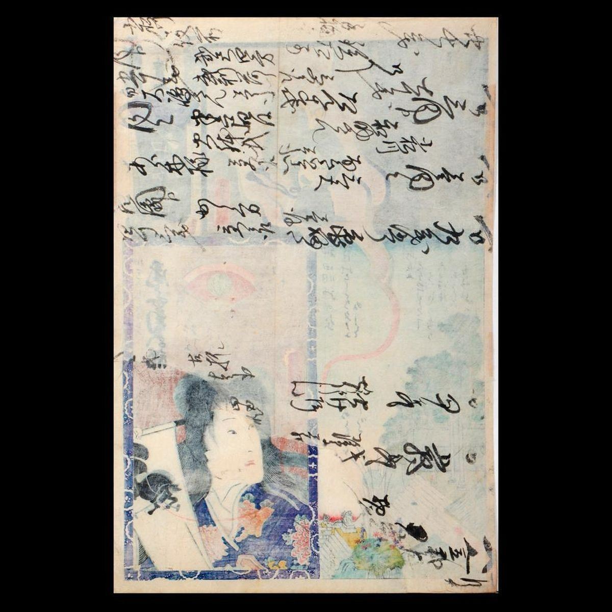 Artist : Kunisada UTAGAWA, Toyokuni III (1786-1865) Series : Ghost Head and Magic Scroll.(Flowers of Edo and Views of Famous Places). Date : (c.1863) Medium: Woodblock Dimensions : 14 x 9 1/2 in. each. Condition : Stained, rubbed, faded.