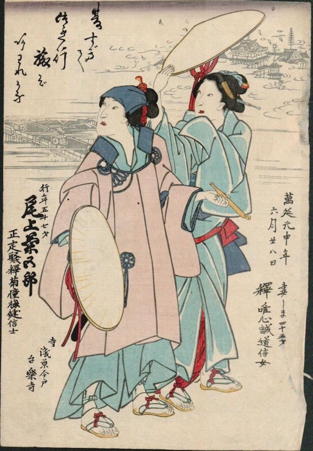 Kuniyoshi - "Fighter in Defensive Stance" Japanese Woodblock Print. Fine Condition, 9.5 x 14