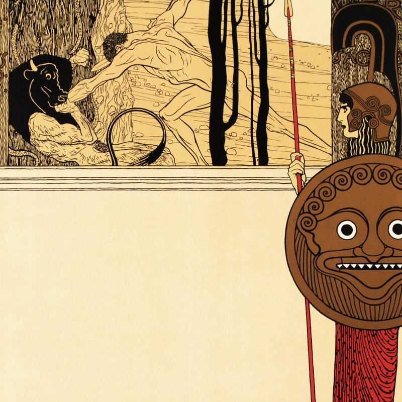"Kunstavsstellvung" is a hand pulled lithograph on paper by the RE Society, image originally by Gustov Klimt. Measures approx. 22" x 30" (with border), 20" x 28" (image).