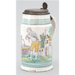 Gmunden, 1820 körül, ónmázas fajansz, ón billeno fedéllel, m: 21,5 cm