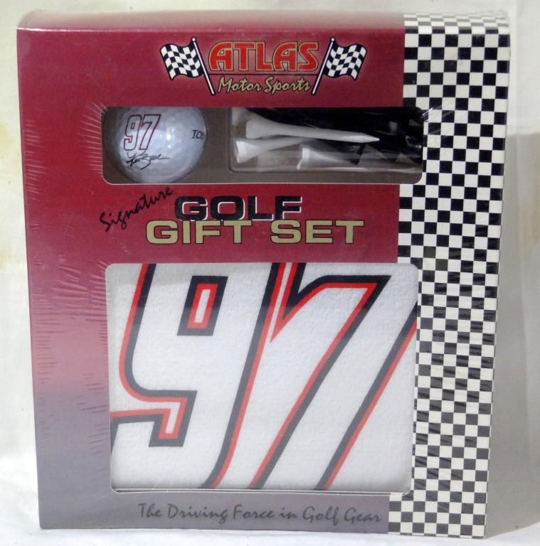 Kurt Busch drove car 97 from 2000 through 2004 making this a highly collectible item. Includes Signature Ball, Golf Tees and Golf Bag Towel. Perfect for Race Fans or Golfers. New In Box.