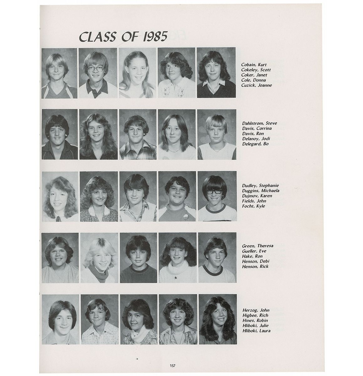 The 1981 edition of the Sylvan, Montesano High School’s (Washington) yearbook, issued during Cobain’s 8th grade year, 8.75 x 11.25, 200 pages. Hardcover yearbook features Cobain’s individual portrait on page 157, with another image of Kurt playing a snare drum at a school assembly on page 160. Several other key people in Cobain’s early life are featured in the book as well, including: Bull Osborne, a founding member of the Melvins and bassist in Cobain’s first band; classmates Trevor Briggs and John Fields; and his wrestling coach and mentor Kenichi Kanno. In fine condition, with some mild handling wear. The book is free from signatures. A well-preserved look into Cobain’s early years, which were both traumatic and formative.