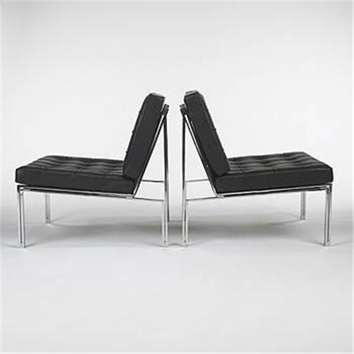 Kurt Thut<BR>lounge chairs, pair<BR>Tschannen Metallbautechnik AG<BR>Switzerland, 1956<BR>chrome-plated steel, leather<BR>28"w x 29"d x 28"h<BR>Literature: Swiss Furniture and Interiors in the 20th Century, Ruegg, pg. 206<BR><BR><BR><BR><BR>