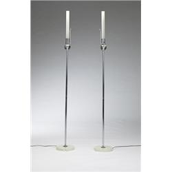 Kurt Versen Tube floor lamps, pair Kurt Versen, Inc. USA, c. 1929 glass, lacquered metal, chromed steel 9"dia x 69.5"h Literature: Creative Design 2, 1934-35 issue, Arts & Decoration Publishers, illustrated pg. 19