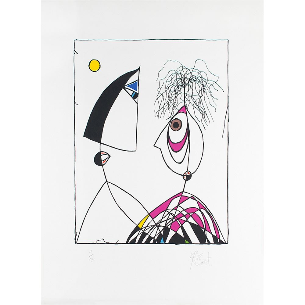 Scarce color limited edition 22 x 30 lithograph featuring Vonnegut's artwork entitled 'Tralfamadore #2,' numbered 4/30, signed in the lower border in pencil, "Kurt Vonnegut." Reverse is stamped with a copyright date of 1996. In fine condition, with some minor creasing to extreme edges.