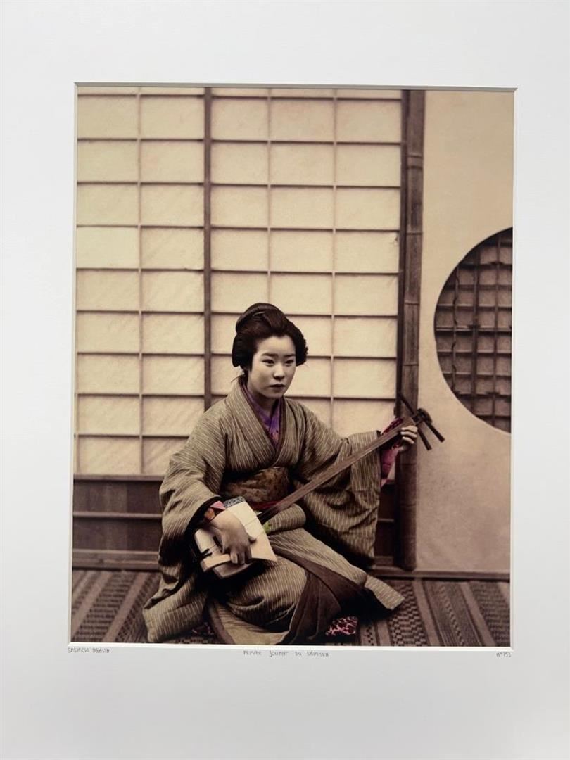 Sashichi Ogawa Japan Femme Jouant Du Samisen Shamisen YellowKorner Certified Photograph. Certificate of Authenticity from YellowKorner affixed to the back. Matted Dimensions 16"x20". Protected with Clear Mylar Sleeve.