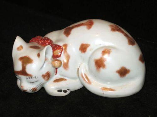 Kutani Japanese Pottery Sleeping Cat, 7 x 4.