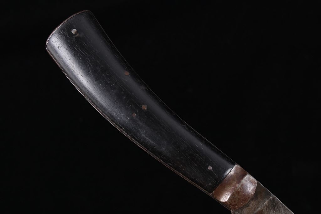 Offered in this lot we have a Kurtmaster and Sheffield vintage folding hoof knives originating from the early 1900's. The first knife is a Sheffield folding hoof knife with a steel blade showing a inward curve and a dark wood grip. The knife is marked "George Wostenholm Sheffield England". The second knife is a Kutmaster folding hoof knife with a wide rectangular blade and wood grip. The blade is marked "Approved U.S.C.G. 1944-796 Kutmaster Wtiga, N.Y. U.S.A.". The pair shows good condition overall with wear due to age. The first knife measures 7 1/4" long with a 3" blade and the second knife measures 7 1/2" long with a 3 1/4" long blade.