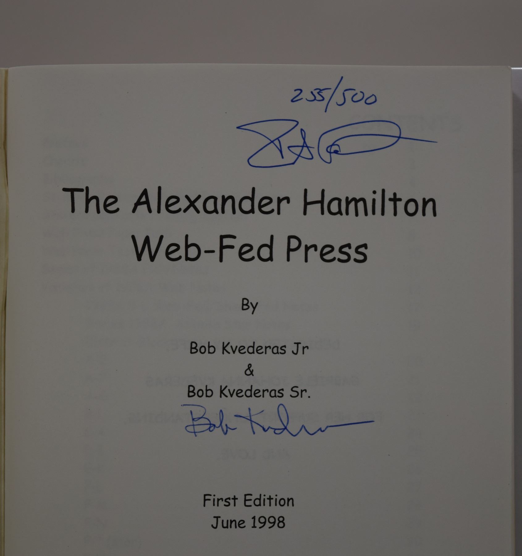 Kvederas, Bob Jr. & Bob Kvederas Sr. (Signed) THE ALEXANDER HAMILTON: WEB-FED PRESS. Rak Ink. 1998. 12mo, 88 pages; Softcover; Signed by the authors. Subject: Paper Money - US