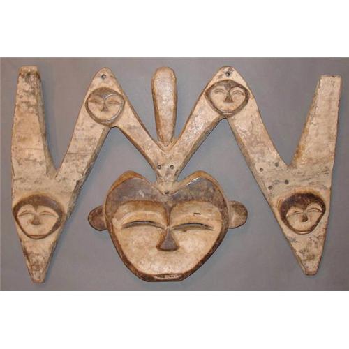 <table width="100%" border="0" cellspacing="0" cellpadding="4"><tr><td><em> Warning: Most African items and 'antiques' being sold on the internet are of recent make and are not genuine. THIS IS A GENUINE AFRICAN ANTIQUE. </em></td></tr><tr> <td width="100%"> This exceedingly rare and valuable mask, from a private New York collector, is of the same sculptural quality as the famous Kwele mask with encircling horns that was collected near Sembe in the 1920's by Alexandre Petit-Renaud, and then donated to the Museum of Natural History in La Rochelle, France. It is also comparable to the one in the Musee de l'Homme. Similar masks have sold for between $50,000 to $100,000. We invite you to come to our location to inspect this magnificent mask for yourself. We are sure that you will share our confidence in its authenticity. It has been repaired, but is nonetheless stunning. This may very well be the last old genuine Kwele mask to be available at an affordable price. 23 x 15.5 inches, 58 x 39 cm </td></tr><tr> <td> </td></tr><tr> <td>Reference #: 092a</td></tr><tr><td>Condition:Good</td></tr><tr><td>Year:Early 20th Century</td></tr><tr><td>Title:Kwele Mask, Authentic and Rare, The Last Of Its</td></tr><tr><td>Location:New York City</td></tr></table>