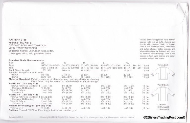 Kwik Sew misses' Jackets design by Kerstin Martensson. Pattern #3158 Misses' Size XS-S-M-L-XL NOTE: Pattern package is factory sealed.. MSRP $11.49