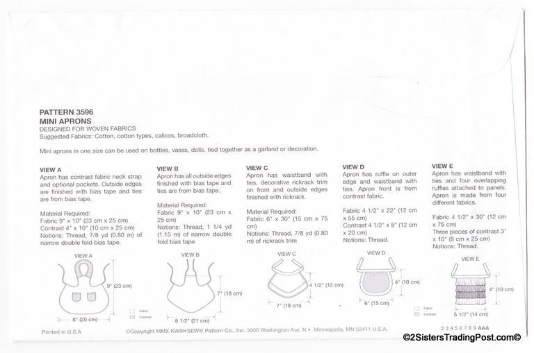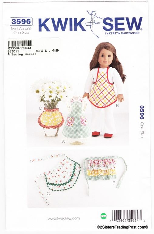 Kwik Sew mini aprons design by Kerstin Martensson. Pattern #3596 One Size NOTE: Pattern package is factory sealed. MSRP $11.49