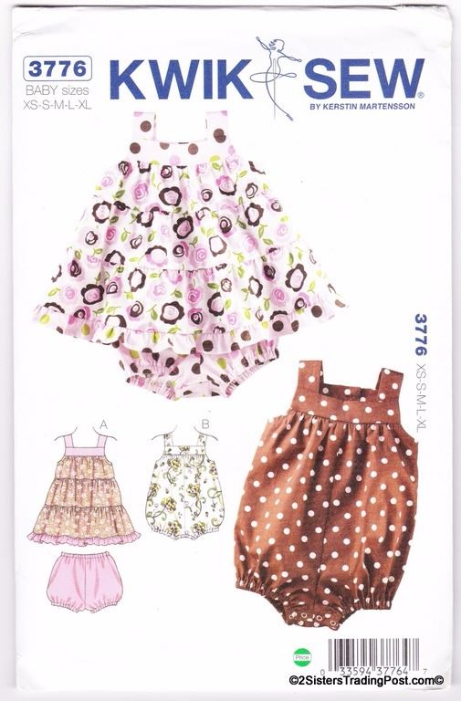 Kwik Sew baby dress, bloomers & romper design by Kerstin Martensson. Pattern #3776 Baby Size XS-S-M-L-XL NOTE: Pattern package is factory sealed. MSRP $11.49