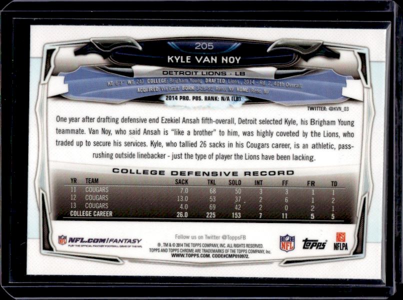 Kyle Van Noy Refractor Rookie Card 2014 Topps Chrome #205