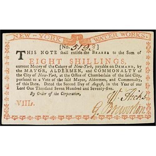 A wonderful, clean and boldly printed specimen of this scarce 1775 issue. Trimmed from the reverse side, which remains perfectly centered, the face just touches the top of the border design and remains quite magnificent in it's sharp text and vivid brown signatures. A definite premium quality example, rarely encountered so very choice. Very "PQ".